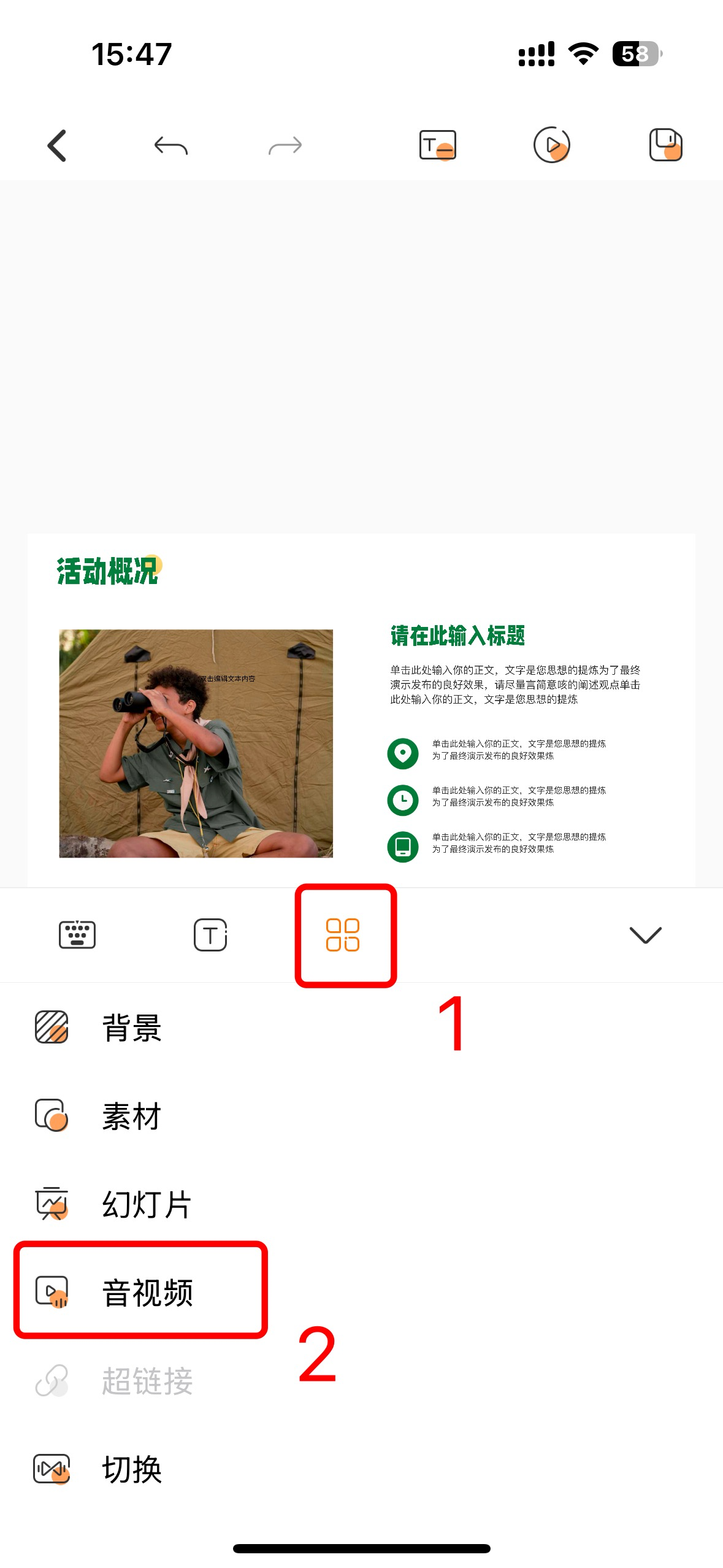 在制作PPT时,适当插入视频不仅能提升观众的专注度,也能丰富内容表达效果,特别适用于企业汇报、教学课件、产品展示等场景。那么,PPT怎样插入视频?下面为你详细讲解操作步骤与应用建议。一、插入视频的操作方法:1.打开你的PPT文件,点击工具栏中音视频选项;点击音视频-PPT制作2.接着选择【视频】;选择视频-PPT制作3.选中手机的本地视频文件,视频将直接添加到当前幻灯片中;选择视频插入-PPT制作