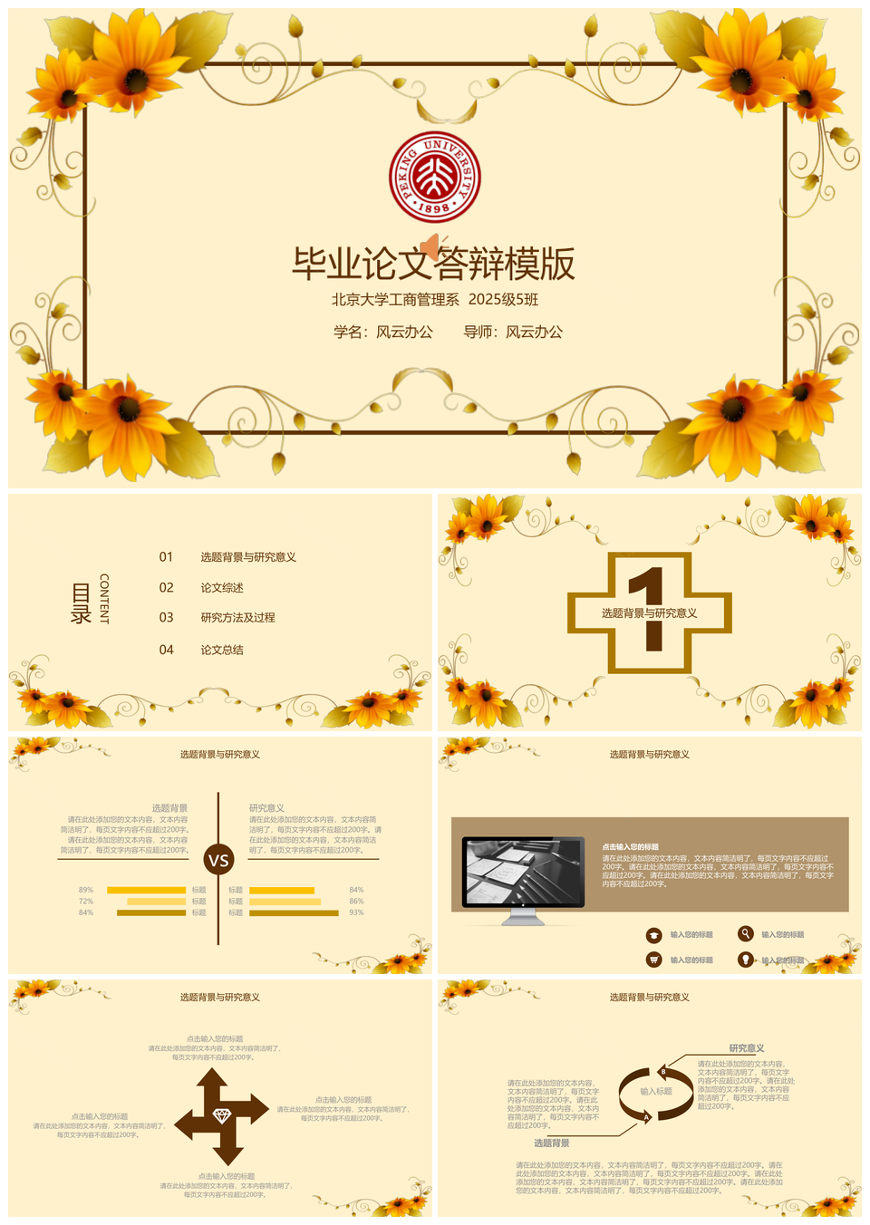 本站提供的2025黄色简约向日葵毕业答辩PPT模板,下载格式为pptx,一共20页,作品中文字及图均可以修改和编辑,图片更改请在作品中右键图片并更换,文字修改请直接点击文字进行修改。