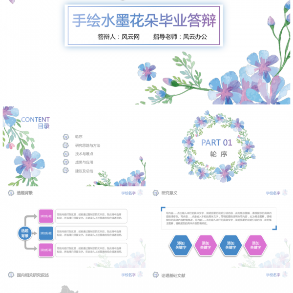 本站提供的蓝色手绘兰花清新简约毕业论文答辩PPT模板,下载格式为pptx,一共25页,作品中文字及图均可以修改和编辑,图片更改请在作品中右键图片并更换,文字修改请直接点击文字进行修改。