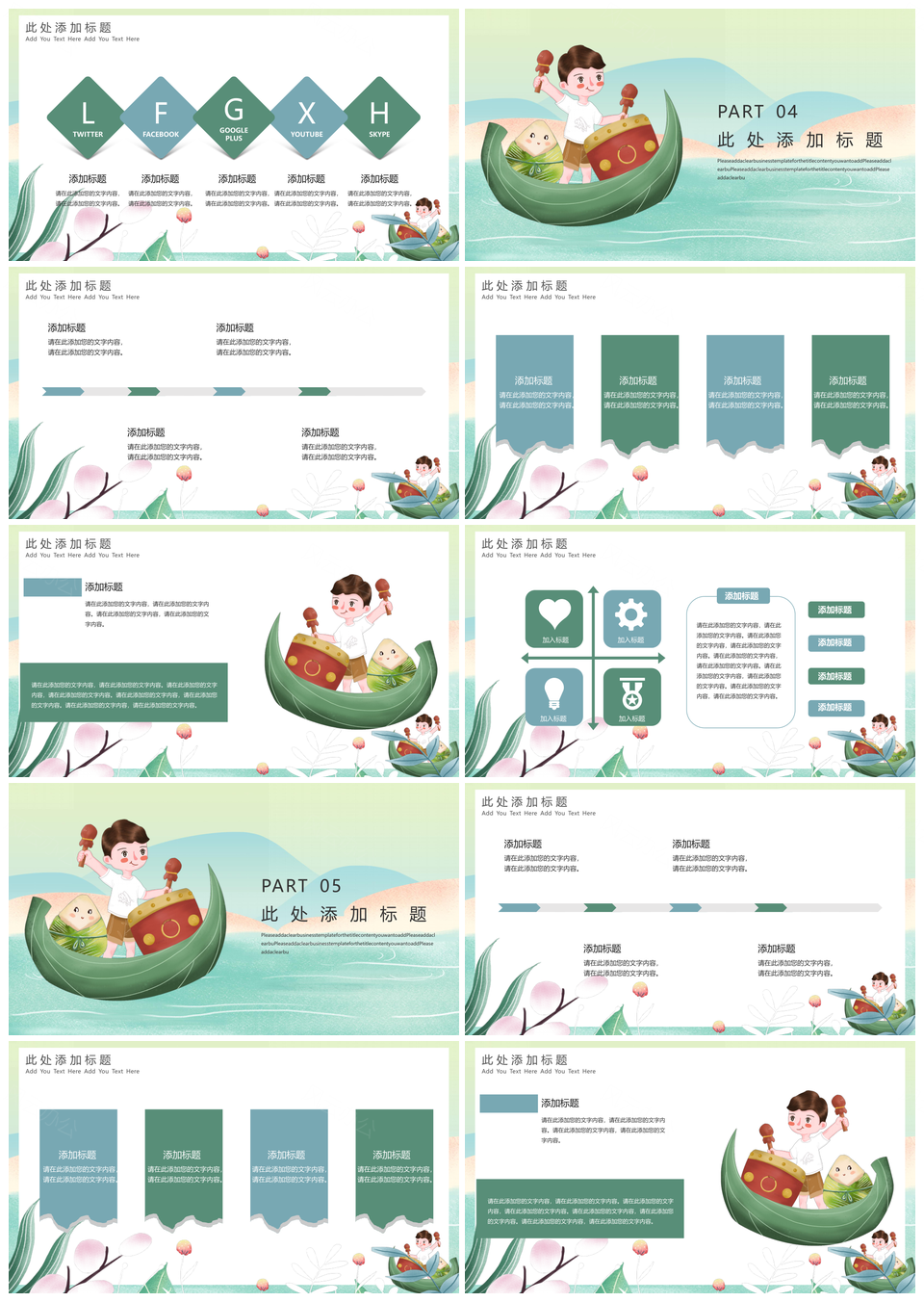 这是一张绿色清新端午节PPT模板,包含绿色、清新、端午节等主题内容,也可用作绿色清新端午节、绿色清新、绿色端午节、清新端午节等PPT场景使用。