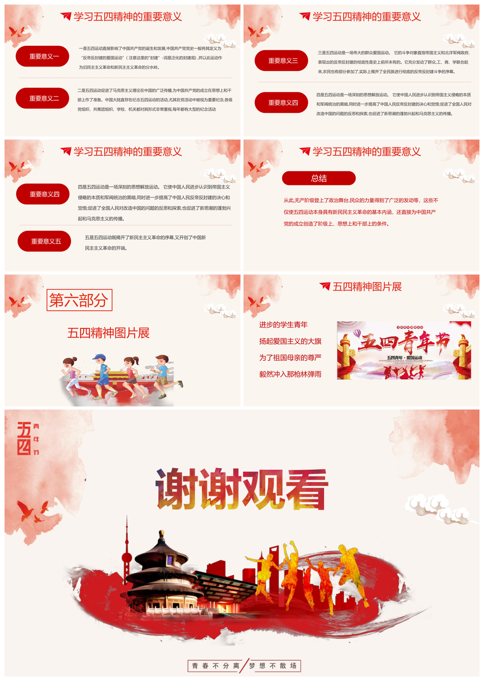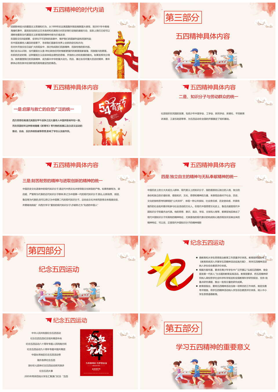 这是一张红色纪念五四运动弘扬五四精神PPT模板,包含红色、纪念、五四运动、弘扬、五四精神等主题内容,也可用作纪念五四运动弘扬五四精神、红色纪念五四运动、纪念五四运动弘扬、五四运动弘扬五四精神、红色纪念、纪念五四运动、五四运动弘扬、弘扬五四精神等PPT场景使用。