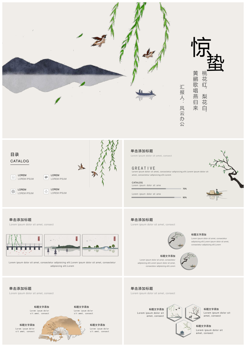 本站提供的绿色惊蛰24节气小清新PPT模板,下载格式为pptx,一共11页,作品中文字及图均可以修改和编辑,图片更改请在作品中右键图片并更换,文字修改请直接点击文字进行修改。