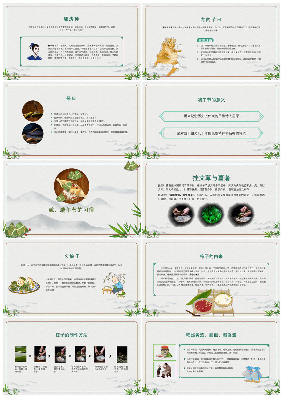这是一张绿色素雅古风传统节日端午节介绍PPT模板,包含绿色、素雅、古风、传统节日、端午节、介绍等主题内容,也可用作绿色素雅古风传统节日、素雅古风传统节日端午节、古风传统节日端午节介绍、传统节日端午节介绍、绿色素雅古风、素雅古风传统节日、古风传统节日端午节、传统节日端午节介绍、绿色素雅、素雅古风、古风传统节日、传统节日端午节、端午节介绍等PPT场景使用。
