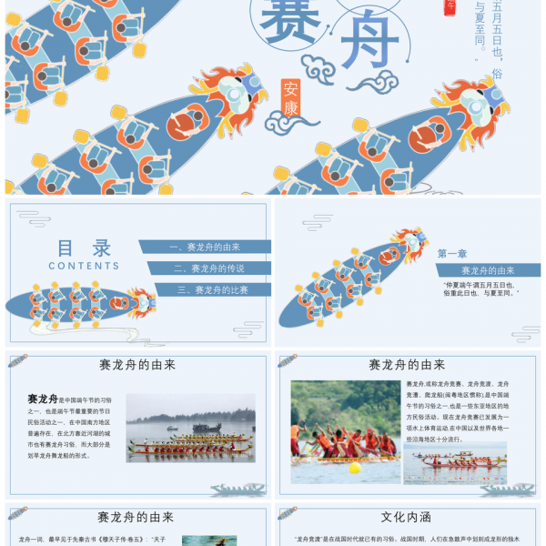 这是一张蓝色简约卡通端午节龙舟文化介绍主题PPT模板,包含蓝色、简约、卡通、端午节、龙舟、文化、介绍、主题等主题内容,也可用作蓝色简约卡通端午节、简约卡通端午节龙舟、卡通端午节龙舟文化、端午节龙舟文化介绍、龙舟文化介绍主题、蓝色简约卡通龙舟、简约卡通龙舟文化、卡通龙舟文化主题、端午节文化介绍主题、蓝色简约文化介绍、简约卡通端午节主题、龙舟介绍主题蓝色、卡通端午节主题简约、蓝色龙舟文化主题、简约端午节文化介绍等PPT场景使用。