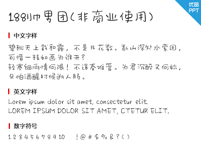 当前位置:首页>字体库>可爱>188帅男团(非商业使用)字体 188帅男团(非商业使用)字体 可爱 24年12月18日 编辑 前往下载 admin 取消关注 关注 私信 188帅男团(非商业使用)字体 语言:简体中文 格式:TTF 版本:1.000 大小:3.07MB 下载权限查看 ¥ 免费下载 评论并刷新后下载 登录后下载 查看演示 {{attr.name}}: 您当前的等级为 登录后免费下载登录 小黑屋反思中,不准下载! 评论后刷新页面下载评论 支付¥以后下载 请先登录 您今天的下载次数(次)用完了,请明天再来 支付积分以后下载立即支付 支付以后下载立即支付 您当前的用户组不允许下载升级会员 您已获得下载权限 您可以每天下载资源次,今日剩余次 相关文章: 上首熊猫体字体 汉仪糖糖粗体简字体 汉仪李李体繁字体 Aa麦瑞可瑞斯摩思(非商业使用)字体 十二 18 本站历史上的今天 吼吼~~~,往年的今天站长不知道跑哪里偷懒去了~~~ 版权声明 站内部分内容由互联网用户自发贡献,该文观点仅代表作者本人。本站仅提供网络资源分享服务,不拥有所有权,不承担相关法律责任。如发现本站有涉嫌抄袭侵权/违法违规的内容, 请 联系我们 一经核实,立即删除。并对发布账号进行永久封禁处理。在为用户提供最好的产品同时,保证优秀的服务质量。 本站仅提供信息存储空间,不拥有所有权,不承担相关法律责任。 给TA打赏 共{{data.count}}人 人已打赏 188帅男团(非商业使用)