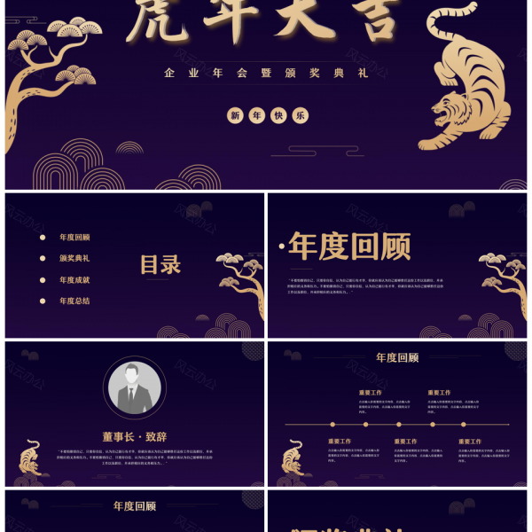 本站提供的蓝色大气中国风虎年企业年会颁奖典礼PPT模板,下载格式为pptx,一共19页,作品中文字及图均可以修改和编辑,图片更改请在作品中右键图片并更换,文字修改请直接点击文字进行修改。