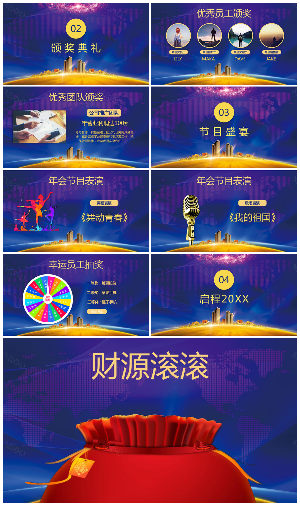 这是一张企业年会暨颁奖盛典PPT模板,包含企业年会、颁奖盛典等主题内容,也可用作企业、年会、颁奖、盛典