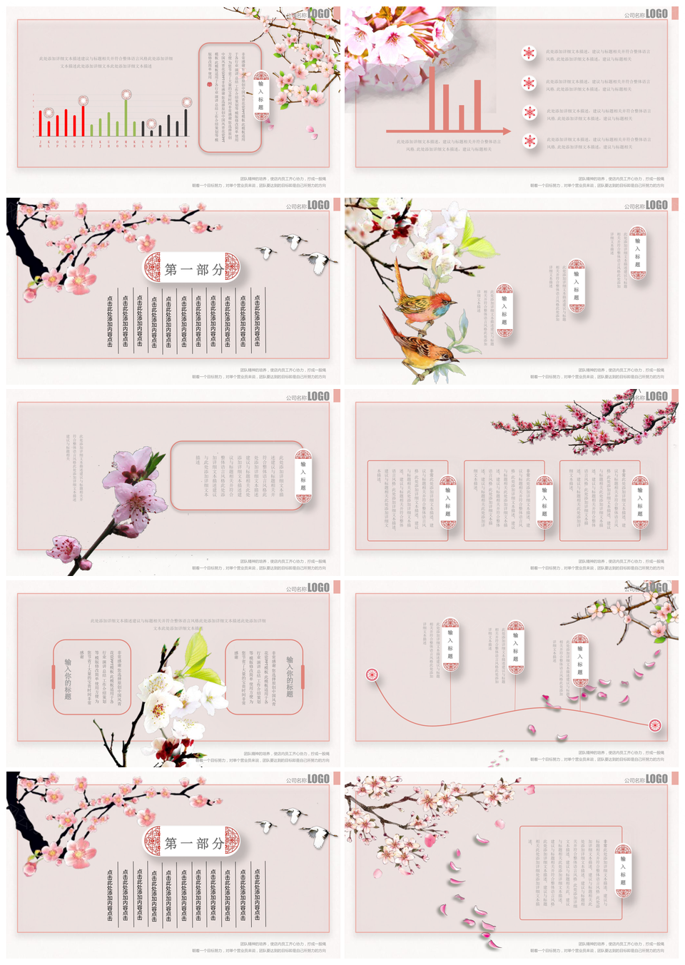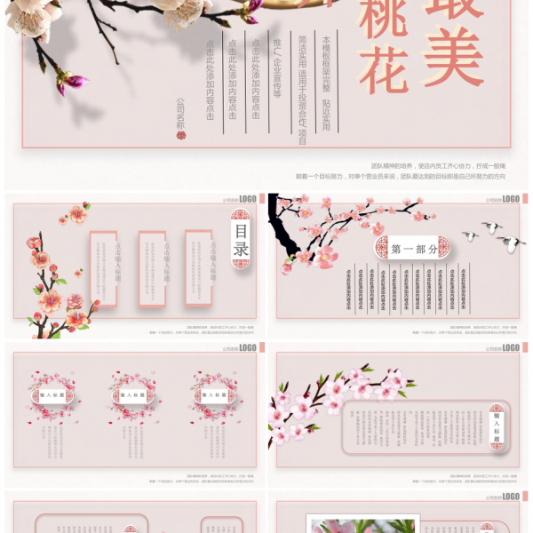 本站提供的中国风古典粉色桃花PPT模板,下载格式为pptx,一共21页,作品中文字及图均可以修改和编辑,图片更改请在作品中右键图片并更换,文字修改请直接点击文字进行修改。