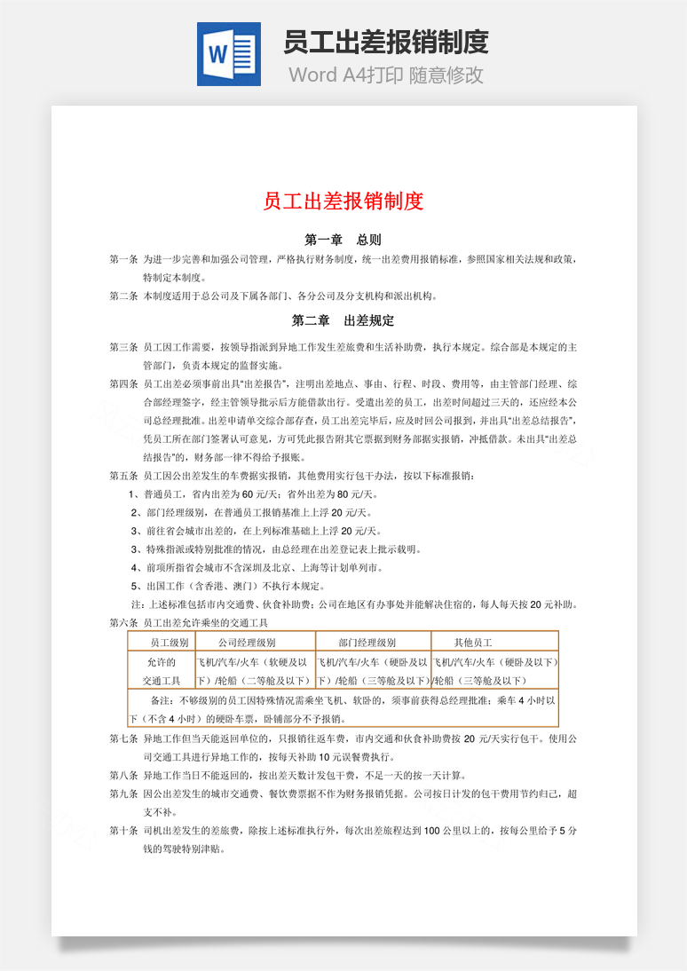 当前位置:首页>Word模板>企业管理>费用员工出差报销制度Word模板 费用员工出差报销制度Word模板 企业管理 5月13日 编辑 前往下载 admin 取消关注 关注 私信 本站提供费用员工出差报销制度Word模板下载,格式为 word,一共1页,作品中文字及图均可以修改和编辑,图片更改请在作品中右键图片并更换,文字修改请直接点击文字进行修改。更多精彩人力资源Word模板,尽在本站。 下载权限查看 ¥ 免费下载 评论并刷新后下载 登录后下载 查看演示 {{attr.name}}: 您当前的等级为 登录后免费下载登录 小黑屋反思中,不准下载! 评论后刷新页面下载评论 支付¥以后下载 请先登录 您今天的下载次数(次)用完了,请明天再来 支付积分以后下载立即支付 支付以后下载立即支付 您当前的用户组不允许下载升级会员 您已获得下载权限 您可以每天下载资源次,今日剩余次 相关文章: 员工出差及费用申请单Word模板 员工奖惩管理制度Word模板 办公用品领用、费用报销流程图Word模板 报销流程费用报销管理制度Word模板 05 13 本站历史上的今天 2024:箭头旋转循环PPT图形素材 版权声明 站内部分内容由互联网用户自发贡献,该文观点仅代表作者本人。本站仅提供网络资源分享服务,不拥有所有权,不承担相关法律责任。如发现本站有涉嫌抄袭侵权/违法违规的内容, 请 联系我们 一经核实,立即删除。并对发布账号进行永久封禁处理。在为用户提供最好的产品同时,保证优秀的服务质量。 本站仅提供信息存储空间,不拥有所有权,不承担相关法律责任。 给TA打赏 共{{data.count}}人 人已打赏 出差制度员工报销费用