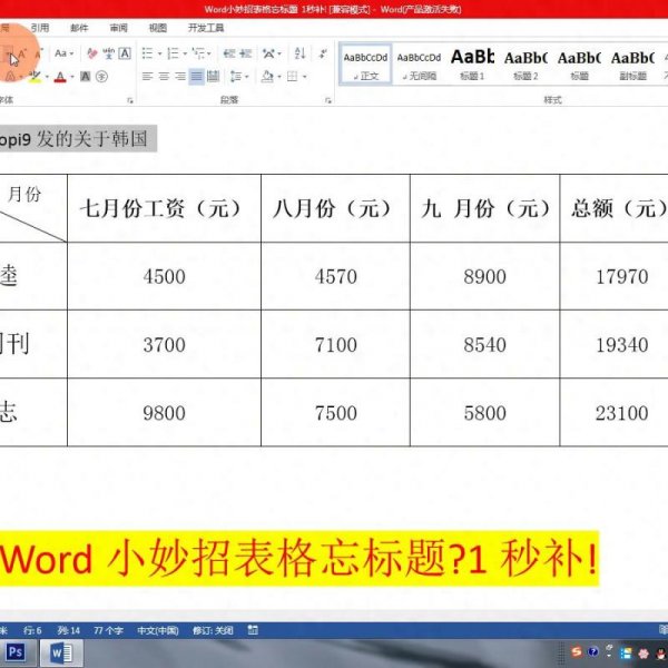 在使用 Word 编辑文档时,为表格添加标题是常见操作。要是忘记先添加标题,常规做法是选中表格(比如将光标置于表格左上角,按住左键拖动选中表格),然后输入文字作为标题。然而,这种方法不仅效率低,而且当标题文字字号改变后,标题位置可能错乱,并不理想。接下来为大家分享一种既快速又能确保表格格式化后标题始终位于表格最上方的方法。