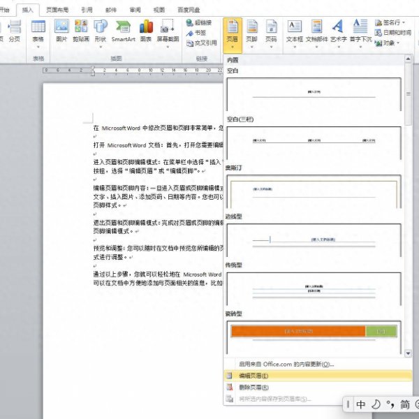 通过以上步骤,您就可以轻松地在Word中编辑和修改页眉和页脚了。这使得您可以在文档中方便地添加与页面相关的信息,比如标题、作者、日期,以及页码等内容。