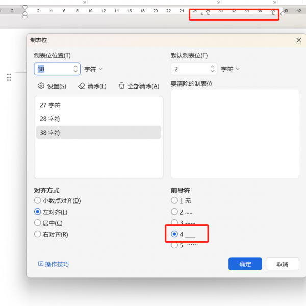 具体步骤如下:先选中需要添加下划线的内容,接着双击“标尺”上的目标位置,以此确定下划线的长度。此时会弹出「制表位」对话框,在其中选择「下划线」作为“引导符”。完成设置后,回到文档,在对应段落的结尾按下「Tab」键,下划线就会自动生成。