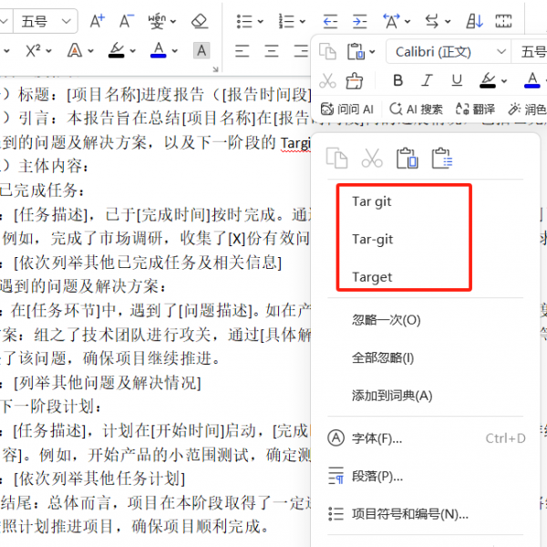 若需修改,右键点击带下划线文字,选择更正建议即可;若无需修改,可选择“忽略一次”或“全部忽略”。