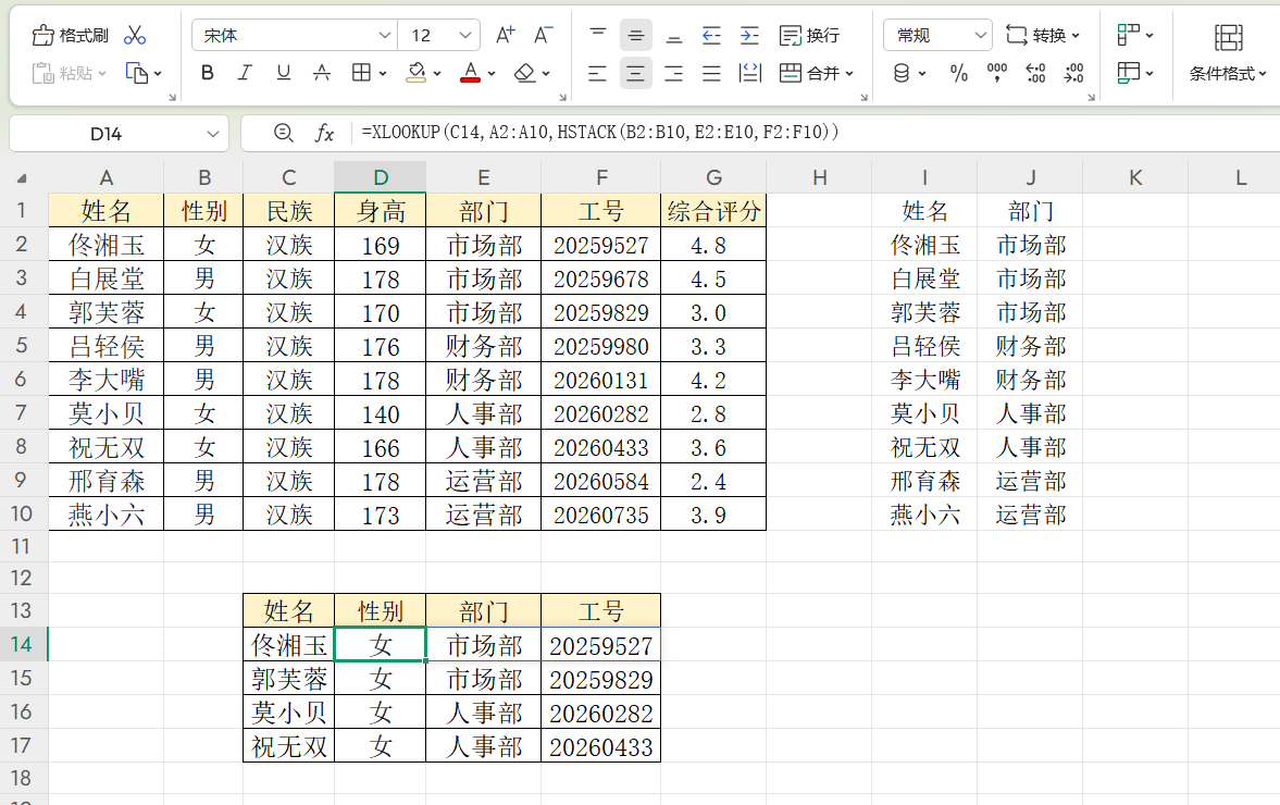 结合XLOOKUP查询:=XLOOKUP(查询值,姓名列区域,上述HSTACK结果)