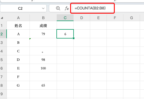 这个函数的作用是:统计指定区域内所有“有内容”的单元格数量。不论内容是数字、文字、还是计算公式,只要单元格不为空,就会被计算进去。