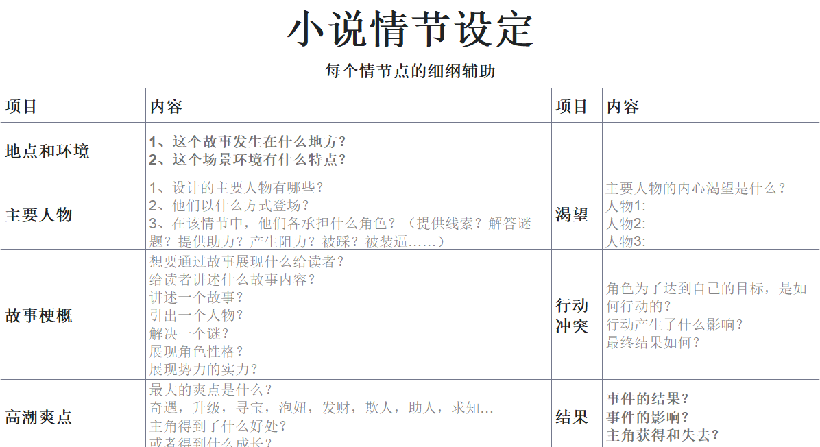 三、小说情节设定模板