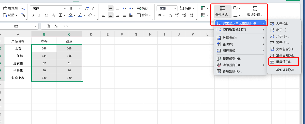 想快速标记出库存与盘点不一致的项目?你可以这样做: