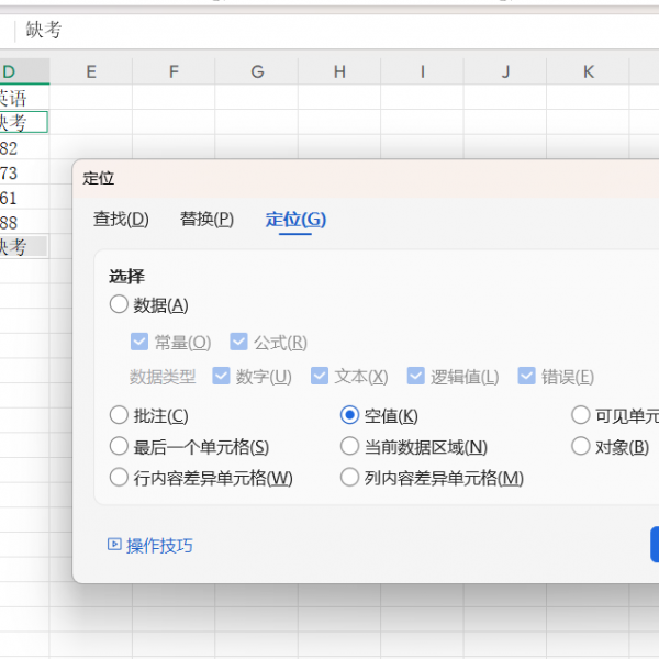 当需要给一片空白单元格填充相同内容(如“缺考”)时,Ctrl+回车能瞬间完成。操作步骤如下:首先选中需要填充的整个数据区域,按下F5调出定位窗口,点击【定位条件】后选择【空值】,确定后所有空白单元格会被选中;接着直接输入“缺考”,最后按下【Ctrl+回车】,所有空白单元格就会自动填充“缺考”,省去逐个输入的麻烦。