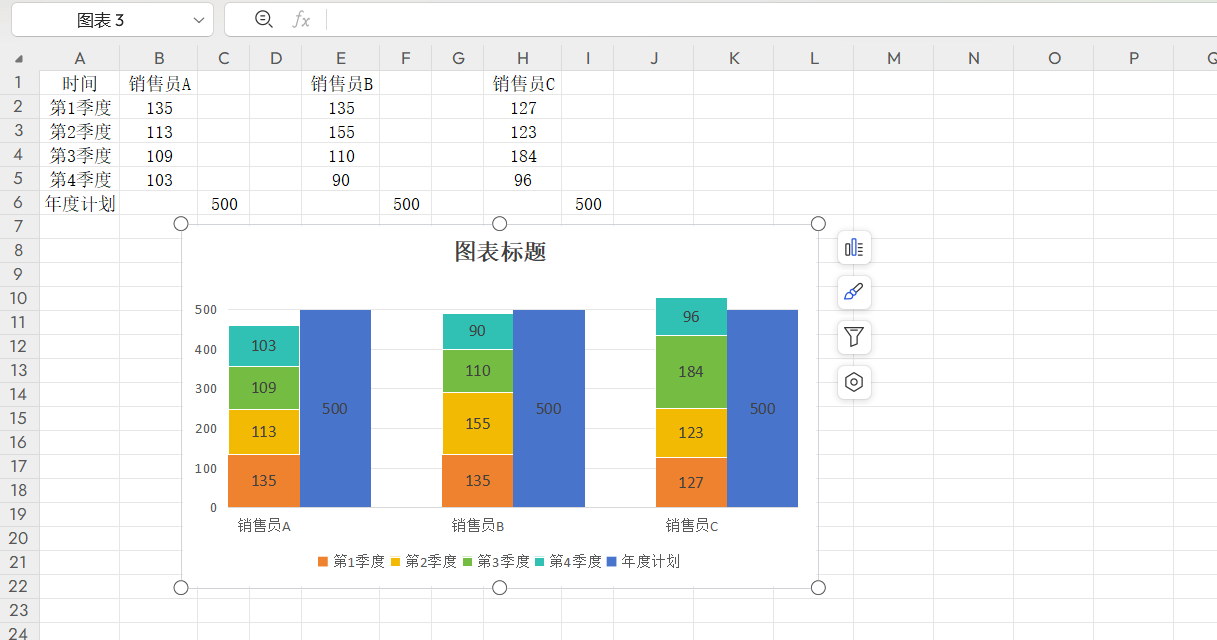 通过以上步骤美化的堆积柱状图,能清晰展现各季度利润叠加值与年度计划的对比关系,帮助使用者更高效地分析利润完成进度,为后续决策提供有力的数据支撑。