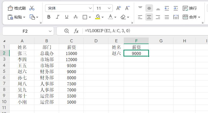 1.精确查找:比如查询员工工资,可使用公式=VLOOKUP(E2,A:C,3,0),快速定位目标员工对应的薪资数据;