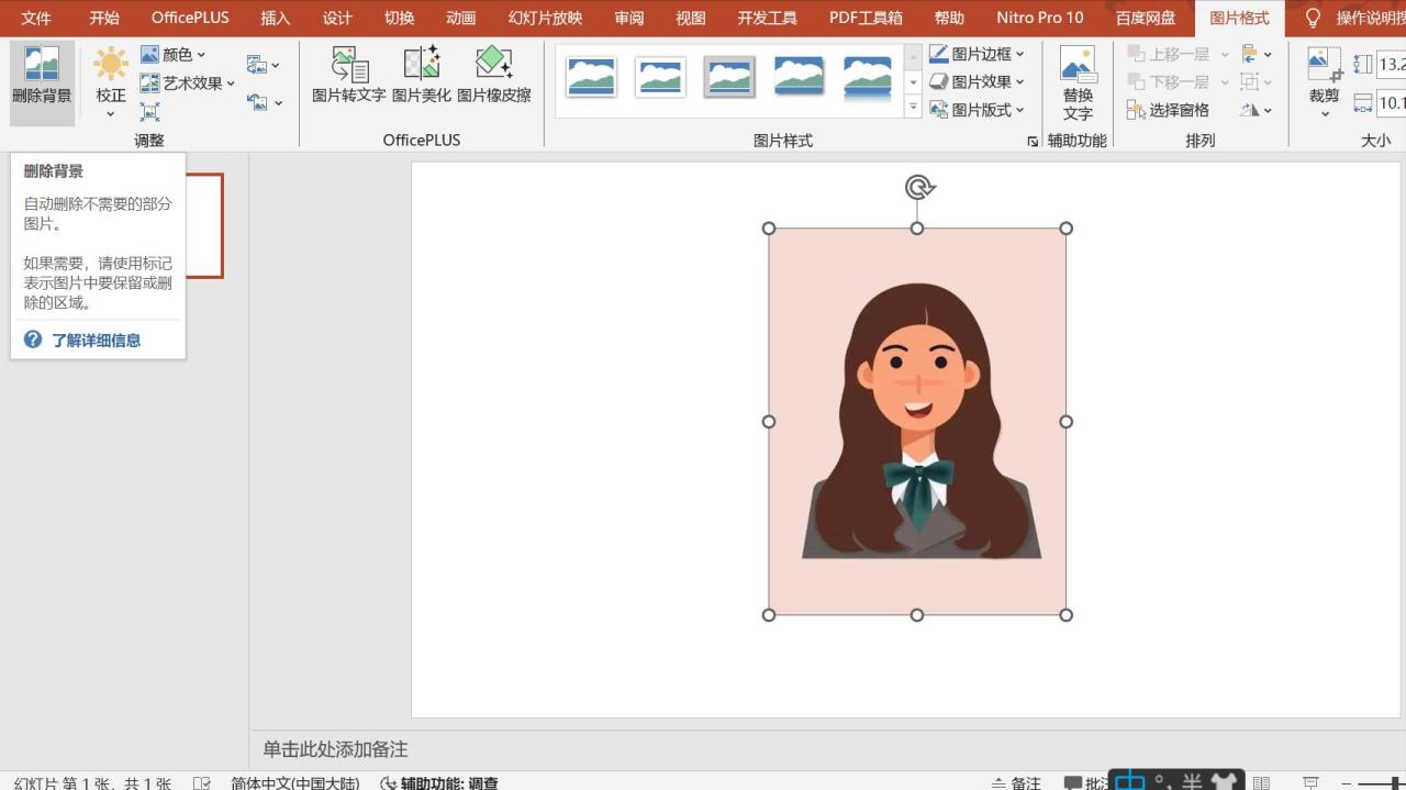 首先,将需要修改底色的照片导入到PPT幻灯片中。点击插入的照片,在菜单栏中选择“图片格式”选项卡,然后找到“删除背景”按钮并点击它。