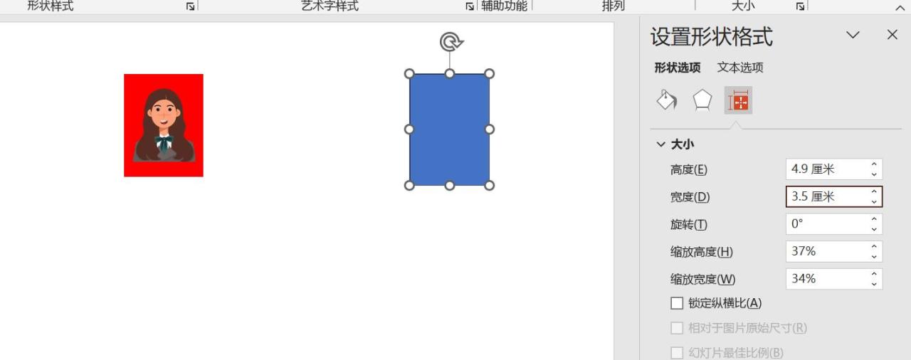 在完成居中对齐后,先选择照片,再选择矩形(如果操作不方便,可以将画布放大后再点击)。然后,在菜单栏中选择“合并形状”选项卡(或者“绘图工具”选项卡下的“合并形状”组,具体取决于PPT版本),执行“相交”操作。通过这个操作,就可以得到一个尺寸符合2寸照片标准(3.5厘米×4.9厘米)的照片。